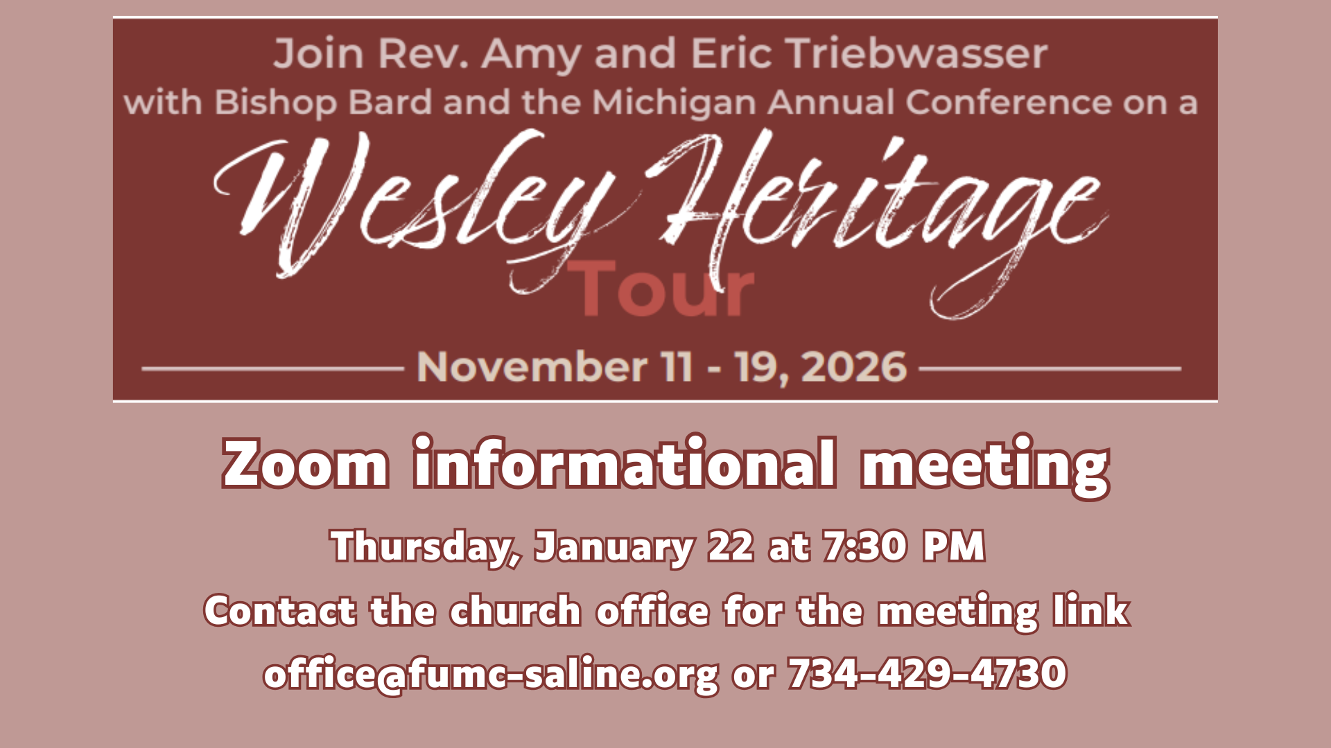 Wesley Heritage tour - Zoom informational meeting