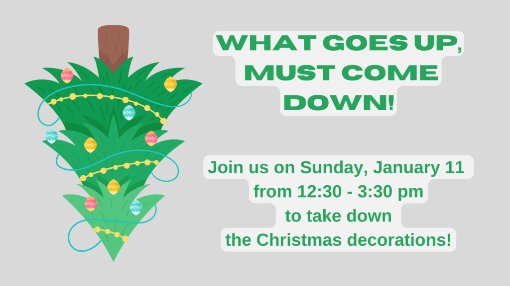 Christmas undecoratingSunday, Jan 11, 2026 at 12:30 pmChristmas undecoratingJanuary 11, 2026 at 12:30 pm